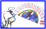 A paper plate, filling: plastic beads, un-popped corn or dried beans, multiple bright colors of curling ribbon, crayons or markers, scissors, and a stapler.