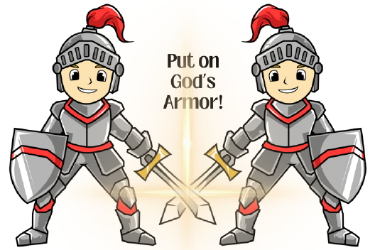 The Bible says God's children are protected by supernatural armor; it is invisible, you can't see it or feel it. We are told to "put on the full armor of God" to protect ourselves from Satan's power and influence, "his schemes," as the Bible puts it. Schemes means to plot or to conspire against someone. Satan is plotting and conspiring to defeat us. (Spend a few minutes discussing sin and how Satan tempts us.) The Bible gives us a description of an ancient Roman soldier's armor and tells us how we can put on supernatural armor to protect and defend ourselves from Satan's fiery attacks.
