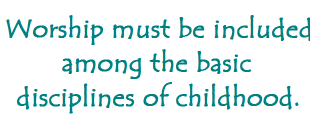 As Christian parents and educators we must be careful not to fall into the trap of having worship become an entertainment session for ourselves or for our children. Our focus must always be what we are giving back to God in response to his love and forgiveness. Nor should we put off having our children attend worship simply because they're young and can't sit still and it's a difficult task for us as adults. Worship must be included among the basic disciplines of childhood in order to help them understand the honor and respect that is due our great God and Savior, Jesus Christ.