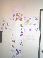 The brown cross was created in the first 2 weeks of our study and shows what we knew about Jesus in late January when we began our Journey from the Stable through the colors of Christ as depicted on the Cross to the Resurrected Lord!